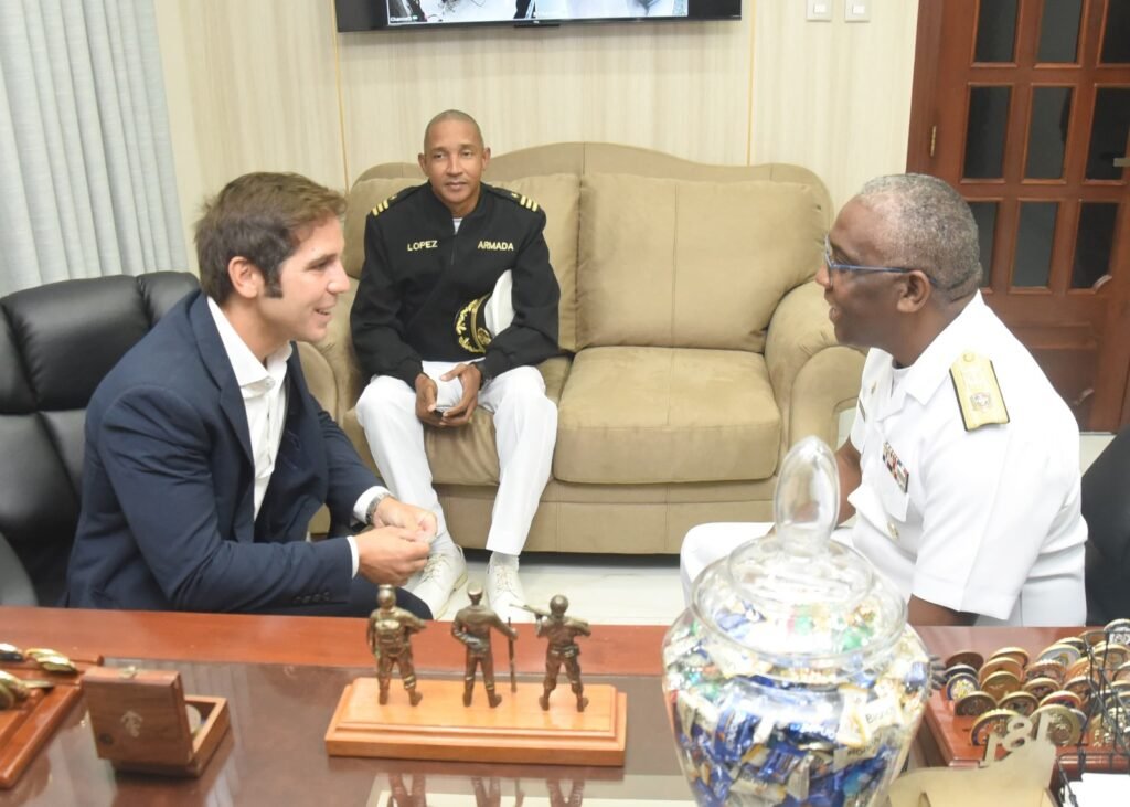 Fue recibido en el despacho del subcomandante general de la Armada, contralmirante Juan Bienvenido Crisóstomo Martínez, ARD, en representación del vicealmirante Agustín Morillo Rodríguez, ARD, comandante general de la institución naval.