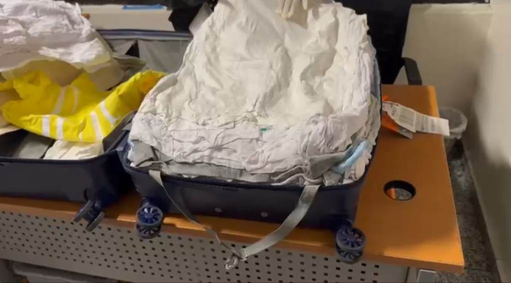 Posteriormente, por instrucciones del fiscal, se inició el protocolo de apertura de la maleta, localizando en su interior, un total de 110 prendas de vestir, todas empapadas de la presunta droga, una modalidad del narcotráfico internacional, para tratar de burlar los controles de seguridad establecidos en las terminales del pais.