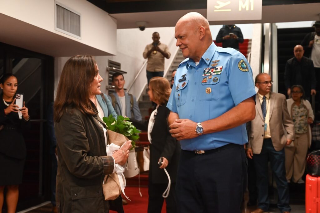 La llegada se produjo a las 3:00 de la tarde, en un vuelo procedente de Nueva York, por el Aeropuerto Internacional de Las Américas, Dr. José Francisco Peña Gómez (AILA). A su arribo, la distinguida funcionaria fue conducida al Salón de Embajadores, donde fue recibida por el general de brigada piloto Enmanuel Souffront Tamayo, FARD, director general del CESAC, y la Encargada de Negocios de la Embajada de los Estados Unidos en la República Dominicana, señora Patricia Aguilera.