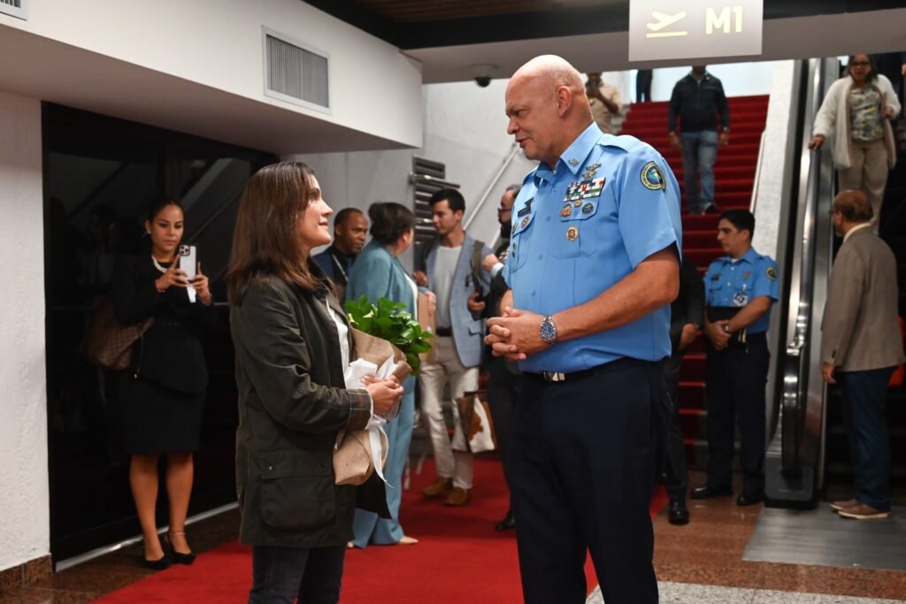 Durante el encuentro, el General Souffront Tamayo expresó un mensaje de bienvenida y reafirmó el compromiso del CESAC con el fortalecimiento de la cooperación internacional y la seguridad aeroportuaria “Extendemos una cordial bienvenida a la señora Leah Francis Campos y reiteramos el compromiso del CESAC de continuar trabajando con dedicación, profesionalismo y transparencia para garantizar la seguridad, el orden y el respeto en cada proceso que involucre misiones diplomáticas y operaciones internacionales. La seguridad aeroportuaria es un pilar esencial de la confianza y la cooperación entre nuestras naciones.”