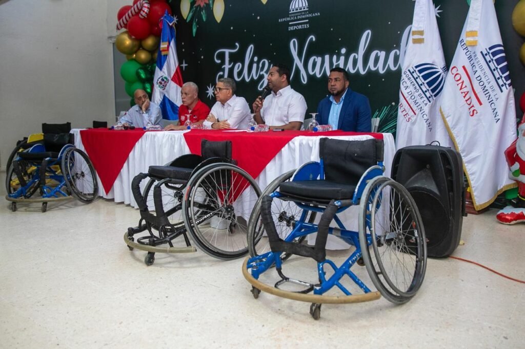 En esta jornada, el CONADIS entregó por medio al Ministerio de Deportes sillas de ruedas deportivas al Comité Paralímpico Dominicano (CPD), para su administración en procesos de práctica, torneos nacionales e internacionales y solicitudes de los clubes de baloncesto sobre silla de ruedas.