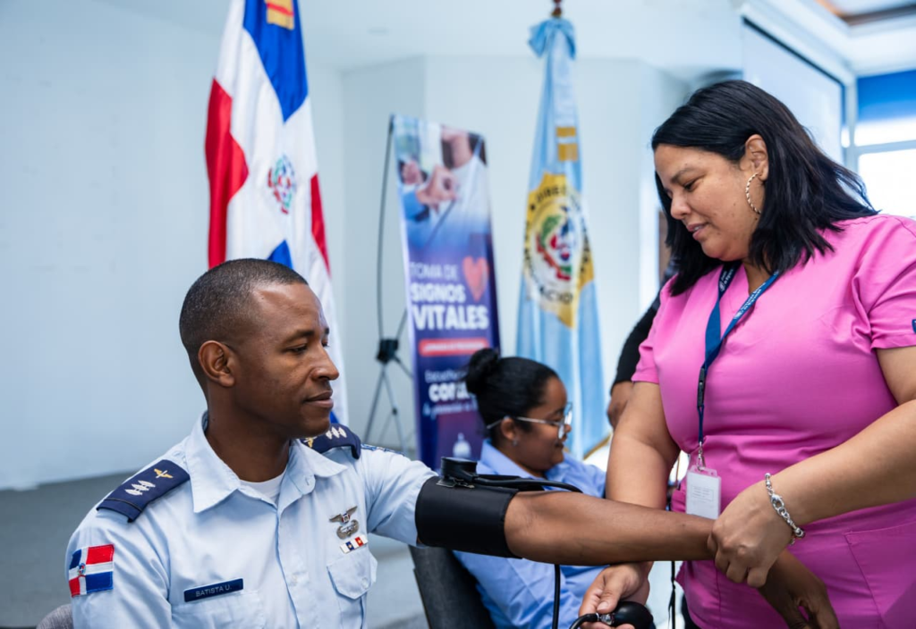 Santo Domingo.- La Dirección General de Migración (DGM) desarrolló una jornada de prevención de accidentes cardiovasculares, que incluyó evaluaciones para medir la presion arterial y signos vitales dirigida a sus colaboradores, con el fin de detectar de manera temprana enfermedades y promover una cultura de cuidado personal continua de la salud, en el entorno laboral.