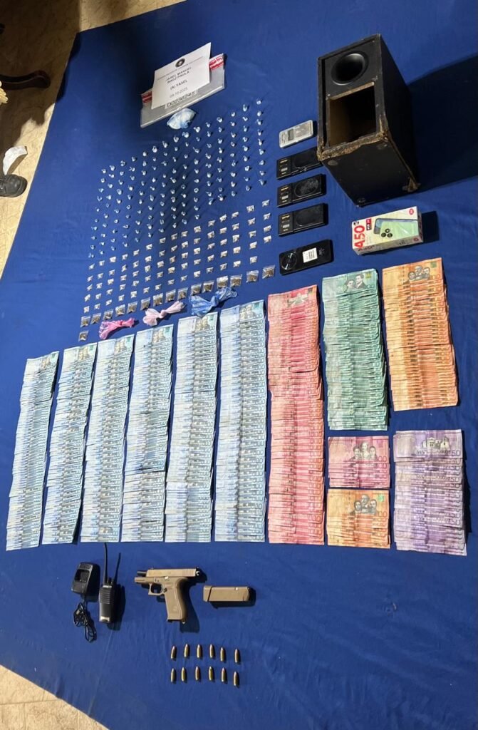 Se ocuparon además, un arma de fuego, calibre 9mm, con su cargador y varias cápsulas, 01 radio de comunicación, RD $607,750 pesos dominicanos, una bocina, fundas y otras evidencias.