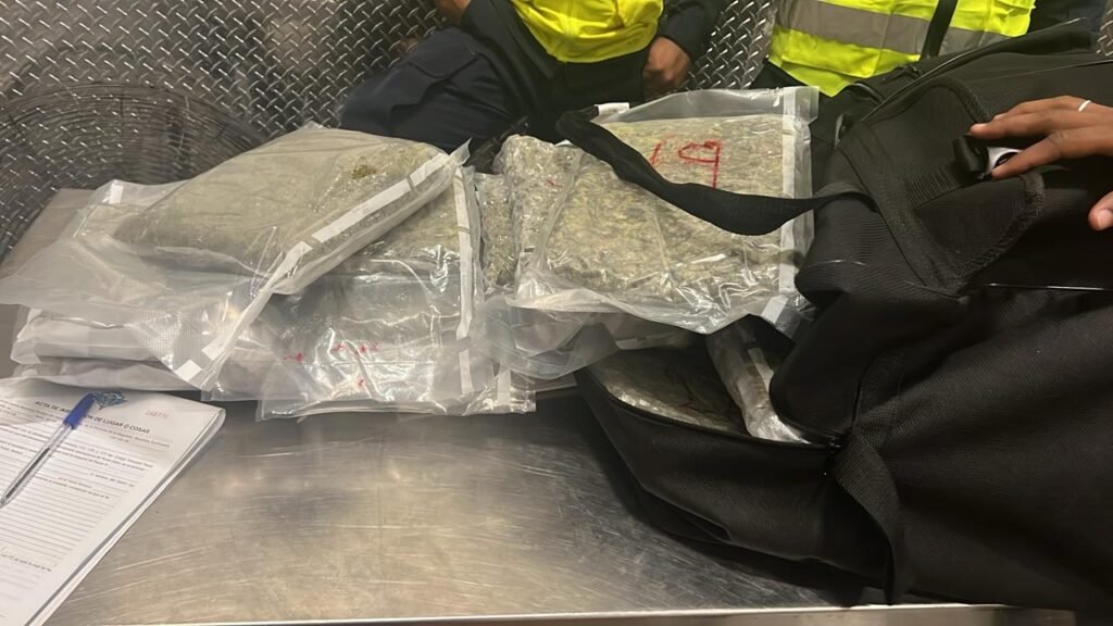Santo Domingo.- Agentes de la Direccion Nacional de Control de Drogas (DNCD) y miembros del Cuerpo Especializado de Seguridad Aeroportuaria (CESAC), bajo la coordinación del Ministerio Público, incautaron 42 paquetes presumiblemente de marihuana, durante labores de inspección conjunta, desarrolladas en el aeropuerto Internacional de Punta Cana, provincia La Altagracia.
