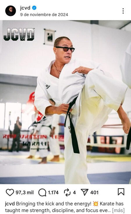 A punto de cumplir los 65, el actor está en plena forma y luce una musculatura que la mayor parte de los mortales no hemos olido ni en nuestros tiempos mozos. Tal y como ha compartido, el actor tiene una rutina de entrenamiento diaria de una hora en la que combina ejercicios de fuerza, trabajo cardiovascular y técnicas de artes marciales, además de técnicas de combate, con golpes, patadas y combinaciones que podíamos ver habitualmente en sus películas.
