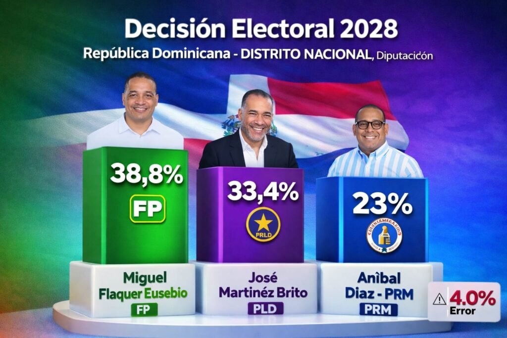 Efe.- Un reciente sondeo elaborado el 14, 15 y 16 de Marzo 2026 a 4200 entrevistados en 32 provincias y 148 municipios arrojo resultados que son de altos intereses para La ciudadanía General por los Partidos mayoritarios rumbo a las Elecciones Mayo en 2028.