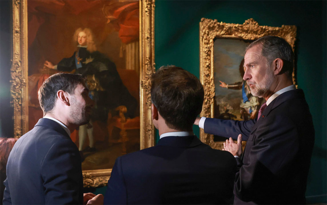 Ambos jefes de Estado han recorrido juntos la exposición que ilustra los múltiples «vínculos» que unen a España y Francia. Una visita con tintes históricos de Felipe VI y Macron a la que fuera residencia oficial de los reyes de Francia hasta la Revolución Francesa, que permaneció cerrada excepcionalmente esta tarde a los visitantes por motivos de seguridad, y que no pisaba oficialmente un soberano español desde que en 1905 lo hizo Alfonso XIII, su bisabuelo.
