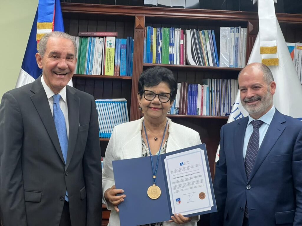 La distinción, fue a su trayectoria académica y sus aportes al fortalecimiento del sistema universitario dominicano.