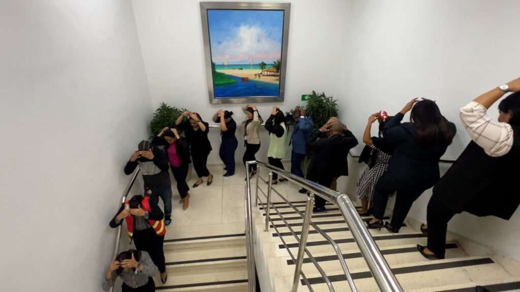 Santo Domingo. – Con el sonido de las alarmas activadas, dio inicio el Simulacro Nacional de Evacuación por Terremoto correspondiente al año 2025 en el Instituto Dominicano de Prevención y Protección de Riesgos Laborales (IDOPPRIL). Se trata de una actividad realizada por quinta vez, bajo la coordinación del Centro de Operaciones de Emergencia (COE).