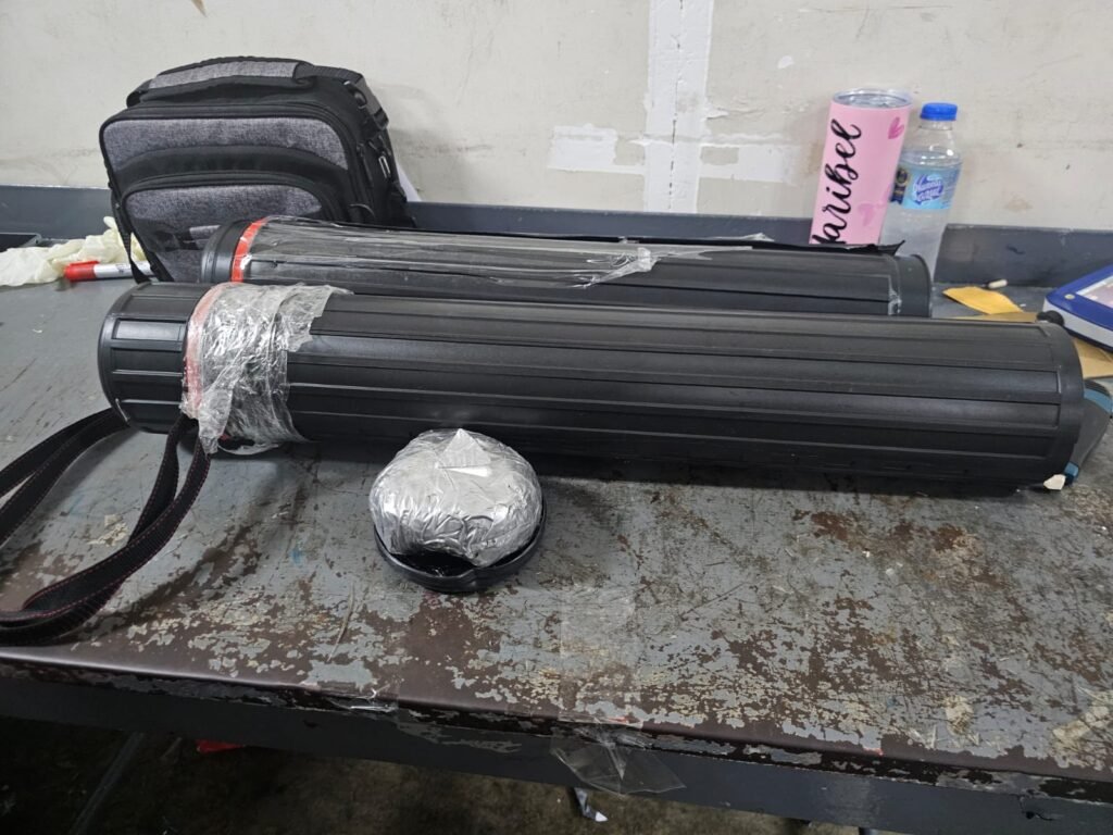 En un segundo operativo, realizado en el Inposdom, las unidades de la DNCD, apoyados por inspectores, intervinieron un paquete, donde se ocupó un portaplanos, conteniendo dentro (oculta) una porción de cocaína, con un peso preliminar de 385 gramos.