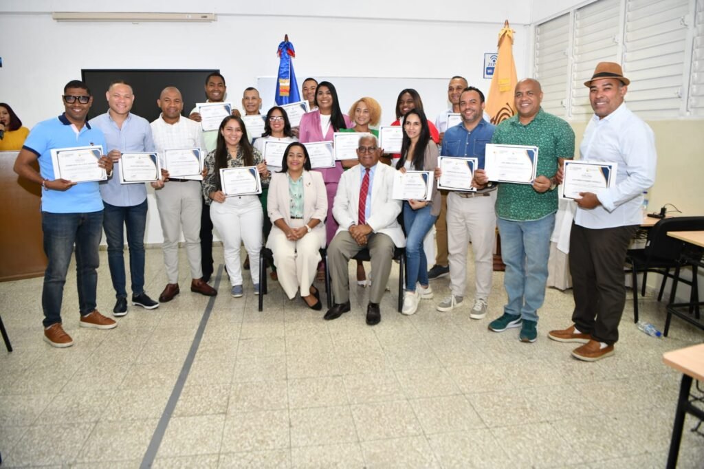 El acto de entrega de certificados en el IESPEC a los participantes de este taller estuvo encabezado por su rector, Felipe Carvajal y la directora de Comunicaciones de la JCE, Suedi León Jiménez.