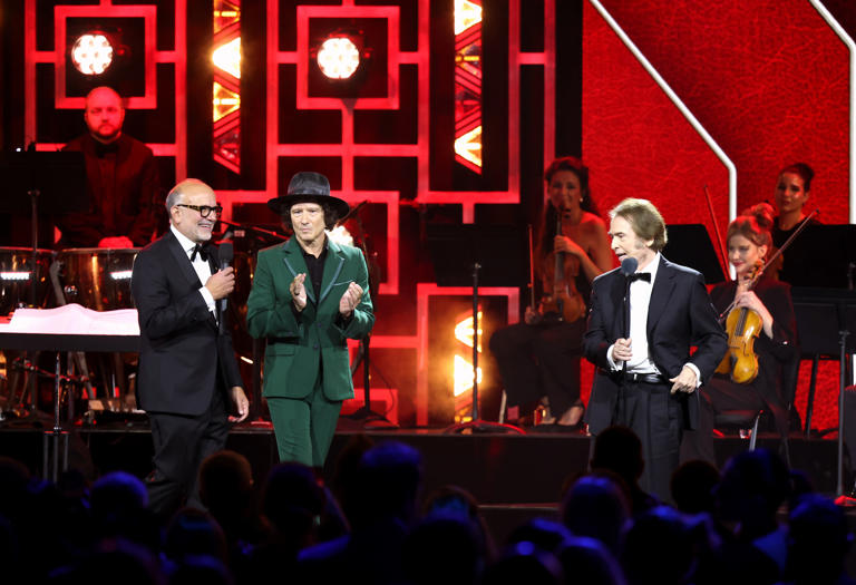 Y tras ello, las actuaciones. Empezó Enrique Bunbury, vestido con un traje verde oliva, cantando Yo Soy Aquel, acompañado en el escenario por una orquesta de cuerda. Poco después se le unió el mexicano Carín León para interpretar Ahora, uno de sus éxitos de los ochenta. Después, el actual rey del regional mexicano, que ya lleva un gran historial en Las Vegas y lo aumentara en 2026 cantando en la Esfera, siguió con una hermosa versión de Toco madera.