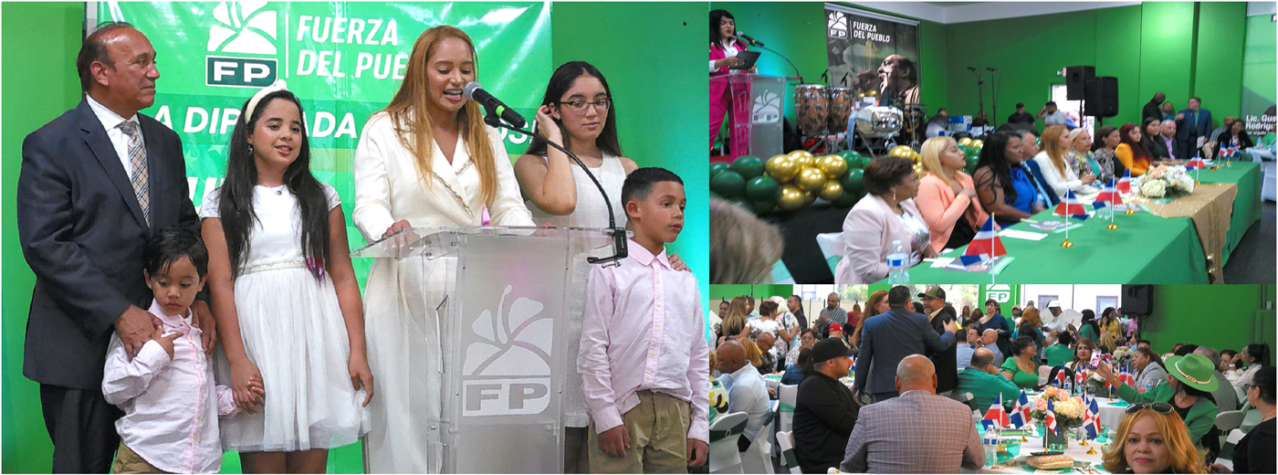 NUEVA YORK.- Leidy Laura Núñez, lanzó ayer domingo su precandidatura a diputada ultramar por FP definiéndose como candidata de la esperanza, junto a su esposo Alfredo Rodríguez y sus hijos. (Fotos Miguel Cruz Tejada).