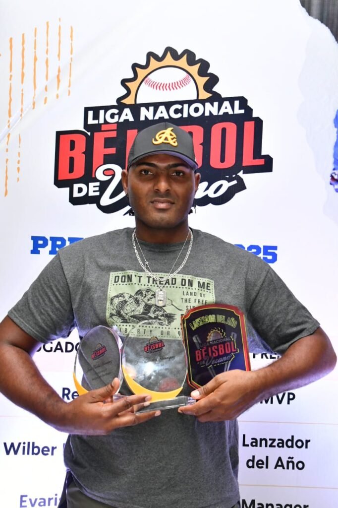 Mientras que el reconocimiento al Novato del Año fue para Jaims Martínez, de los Mineros de Bonao, por su sobresaliente debut en la liga.