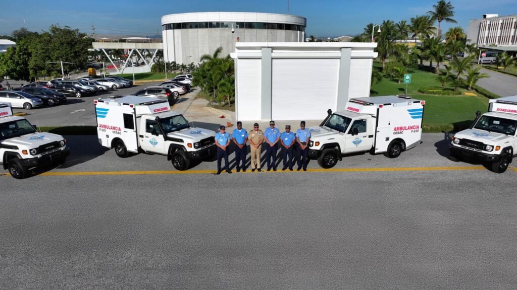Santo Domingo. – El Ministerio de Defensa (MIDE), a través de la Industria Militar Dominicana (IMDOM), continúa consolidando su rol como motor de innovación, autosuficiencia y apoyo logístico del Estado dominicano, al hacer entrega de cuatro modernas ambulancias todo terreno al Cuerpo Especializado en Seguridad Aeroportuaria y de la Aviación Civil (CESAC), con el objetivo de reforzar las capacidades de respuesta ante emergencias médicas en los principales aeropuertos del país.