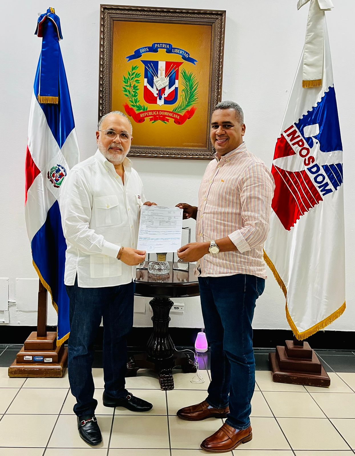 Pablo Valentín Rosario, hace entrega formal de la constancia de la liquidación al señor Erick Guzmán, director general del Instituto Postal Dominicano