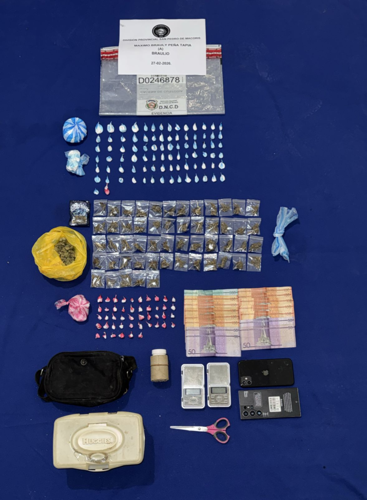En las intervenciones, se arrestaron a unas 3, 268 personas y ocuparon además, 15 armas de fuego, 43 cuchillos y machetes, 13 vehículos, 96 motocicletas, 108 radios de comunicación, 367 balanzas, 903 celulares, 01 chaleco antibalas, 04 máquinas tragamonedas, dinero en pesos y dólares, entre otras evidencias.