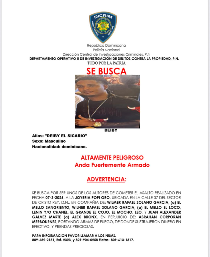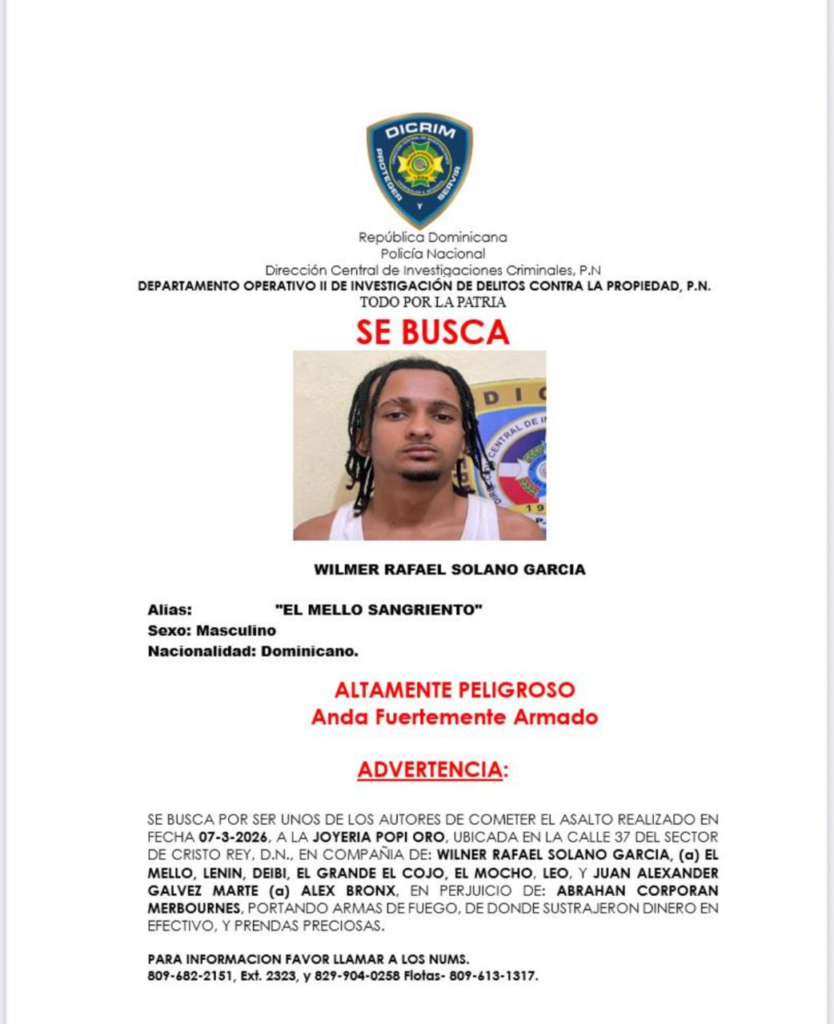 Se trata de Wilmer Rafael Solano García (a) “El Mello Sangriento”; Wilner Rafael Solano García (a) “El Mello Loco”; Deiby (a) “Deiby el Sicario”; Lenin; “El Mocho”; “El Grande” y/o “El Cojo”, así como también Justin Guerrero (a) El Boricua.