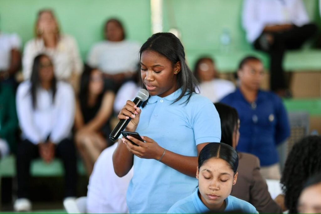 En representación de los estudiantes, Thalianny Brito, alumna de sexto de secundaria del Instituto Tecnológico San Ignacio de Loyola, en la modalidad técnico agropecuaria, valoró el fortalecimiento de los espacios educativos y el impacto transformador de la educación en la vida de la juventud. Señaló que la educación cambia miradas, abre caminos y despierta sueños, y que el futuro del país se construye cuando se garantiza una educación digna y de calidad.