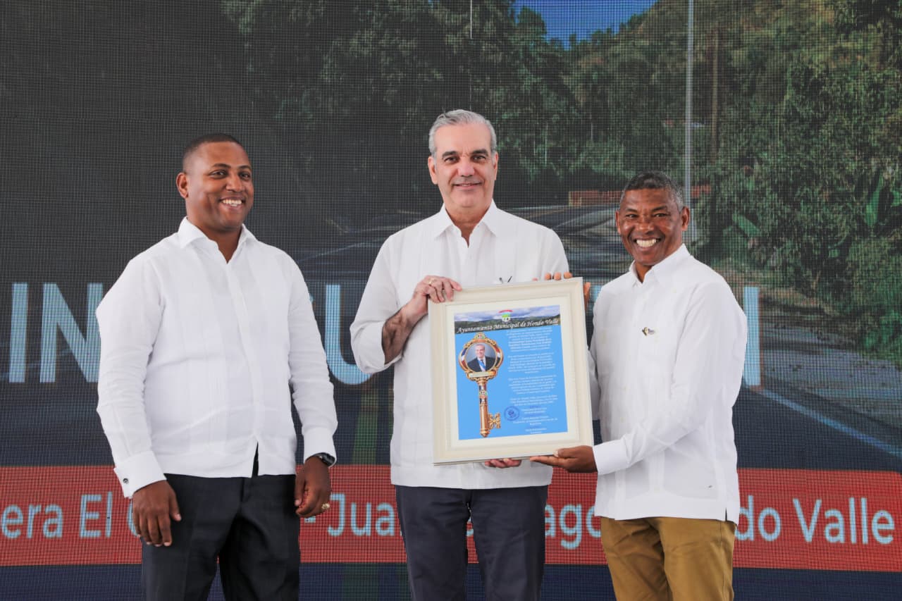 En el acto, el Ayuntamiento Municipal de Hondo Valle y el Consejo de Regidores entregaron la Llave de la Ciudad al presidente Luis Rodolfo Abinader Corona, como reconocimiento a su compromiso con el desarrollo de los municipios de El Cercado, Juan Santiago, Rancho de la Guardia y Hondo Valle. La distinción simboliza la gratitud y el respeto del pueblo hondo vallense y fue encabezada por el alcalde Aciano de la Cruz, junto con las autoridades municipales y comunitarias.