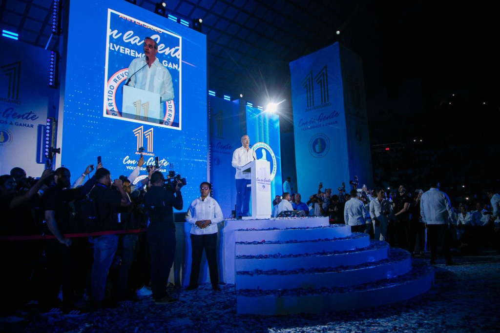 Santiago.— El presidente de la República y líder del Partido Revolucionario Moderno (PRM), Luis Abinader, destacó los avances alcanzados en áreas estratégicas del país, incluyendo institucionalidad, seguridad, educación, desarrollo económico, transparencia e infraestructura, reafirmando su compromiso con el progreso sostenido y la modernización de la República Dominicana, durante la celebración del 11 aniversario de la organización política en la Gran Arena del Cibao.