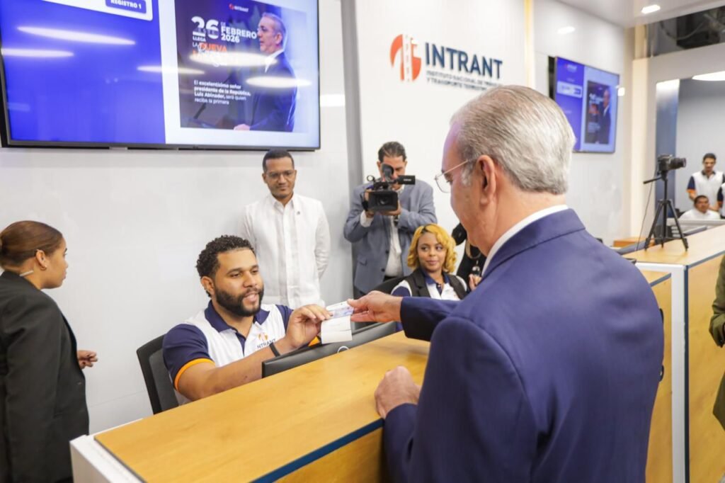 Santo Domingo. – El presidente de la República, Luis Abinader, recibió este 26 de febrero la primera emisión de la nueva Licencia de Conducir, durante el acto oficial encabezado por el Instituto Nacional de Tránsito y Transporte Terrestre (INTRANT), dando inicio formal a una nueva etapa en el sistema nacional de licencias.