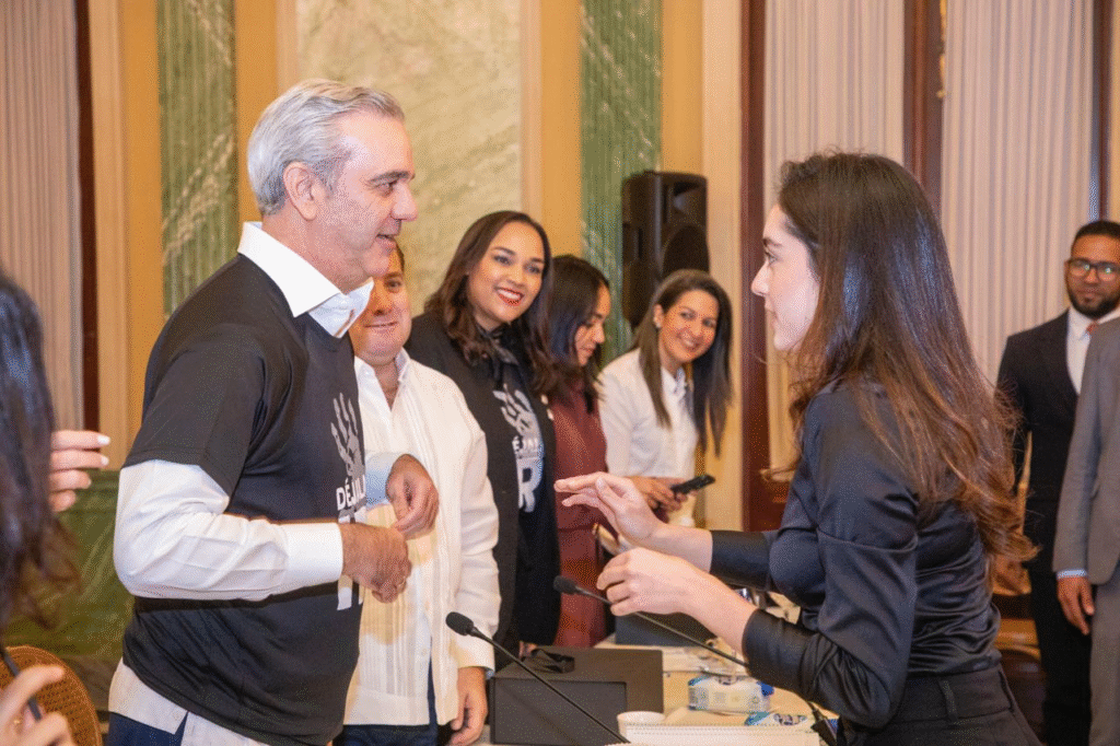 En el acto también participaron, la vicepresidenta Raquel Peña; la ministras, de Interior y Policía, Faride Raful, y de la Mujer, Mayra Jiménez; una de las hijas del presidente, Adriana Abinader; y la diputada Kinsberly Taveras junto a una representación de mujeres diputadas y senadoras.