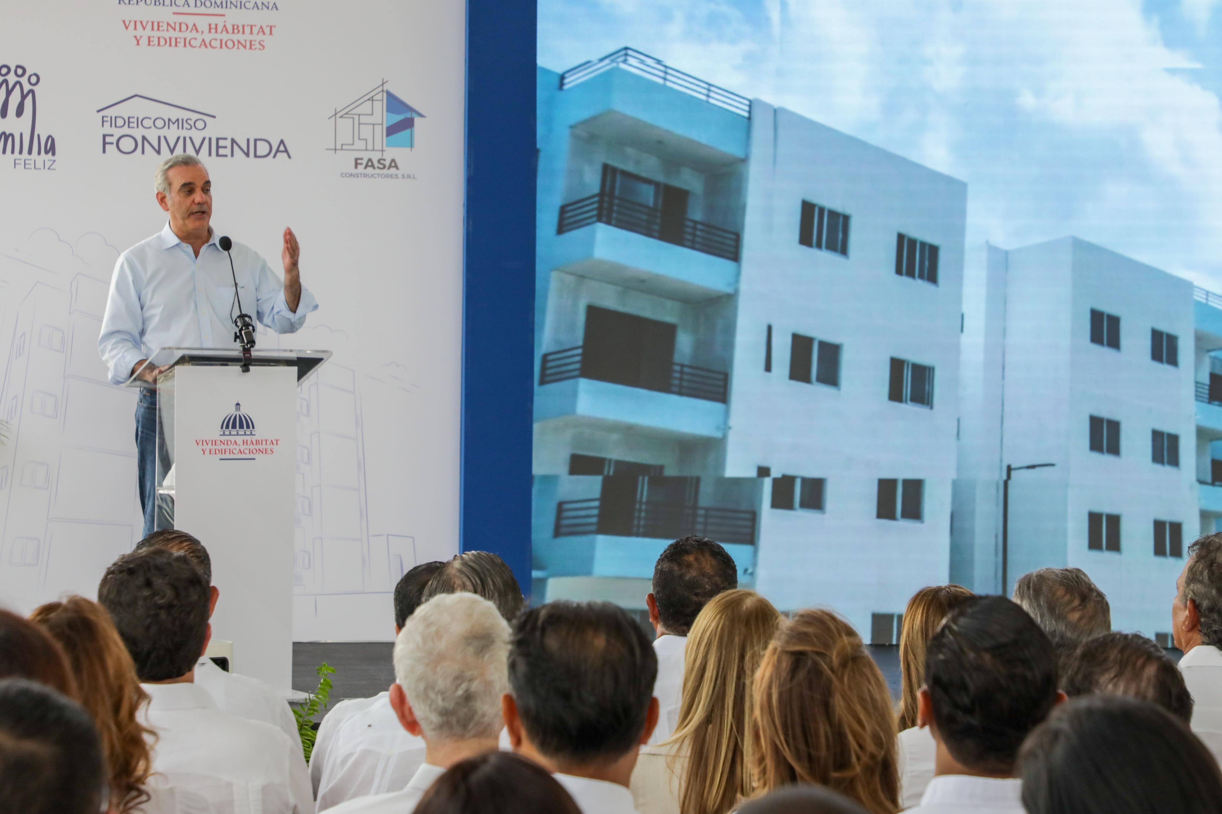 Santo Domingo.– El presidente Luis Abinader anunció que seguirá apoyando el desarrollo de viviendas de bajo costo para garantizar que las familias tengan acceso a un techo seguro, digno y adecuado, al entregar 144 apartamentos de la primera etapa del residencial Laderas del Este, que beneficiará a más de 400 personas.