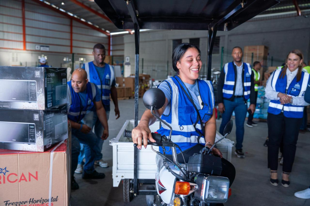 La entrega se realizó en el Centro de Distribución y Logística de Propeep en Haina, donde Robert Polanco estuvo acompañado por la directora del programa Renacer Contigo, Carmen Blanc, y la alcaldesa de Villa Tapia, Raquel Rosario.