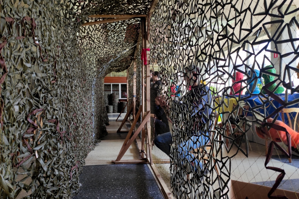 - 17:36Centro de voluntarios que tejen redes de camuflaje para el Ejército ucraniano en Leópolis. Los ucranianos se apresuran a tejer redes de camuflaje para sus soldados cuya demanda crece con la llegada de nuevos equipos al frente que tienen que ser ocultados ante la amenaza de los drones y la artillería del enemigo.