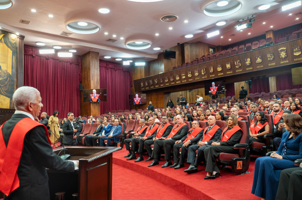 La ceremonia estuvo encabezada por el presidente del Senado, Ricardo de los Santos, junto al representante académico de la UCLM, Marcos Francisco Massó Garrote; el presidente del Tribunal constitucional, Napoleón Estévez Lavandier, y la senadora Lía Díaz de Díaz, secretaria del bufete directivo.