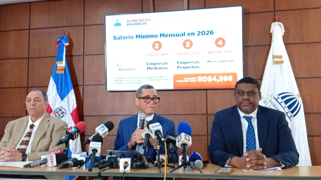 Asimismo, el ministro dijo que se trata de un aumento salarial que fortalece el poder adquisitivo y combate la pobreza, al tiempo de señalar que iniciándose el 2026, “la República Dominicana da un paso firme hacia la mejora de las condiciones de vida de miles de trabajadores con la aplicación total de este aumento del salario mínimo, aprobado en la mesa del diálogo tripartito por el Comité Nacional de Salarios”.
