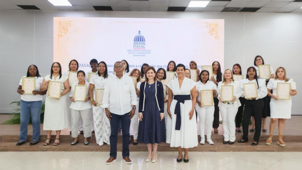 Santo Domingo.– Cerca de 75 colaboradoras de la Dirección de Asistencia Social y Alimentación Comunitaria (Dasac) fueron reconocidas este domingo en un acto encabezado por la vicepresidenta de la República, Raquel Peña.